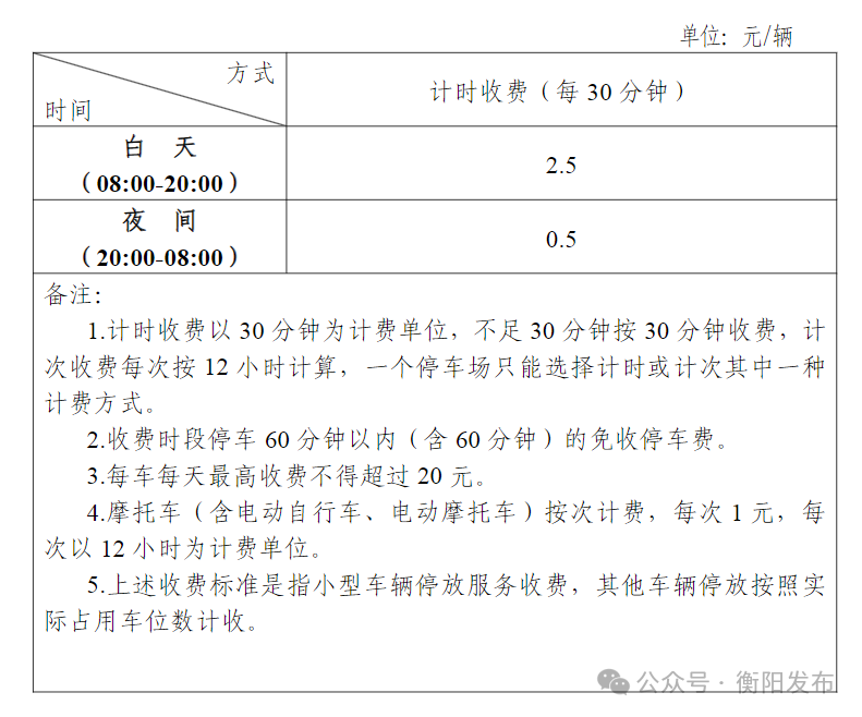 《衡阳市机动车停放服务收费管理